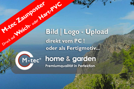 Laden Sie Ihr eigenes Bild in die M-tec Shop Zaunvorschau hoch. Sie bestimmen Motiv und Größe - Wir drucken für Sie!