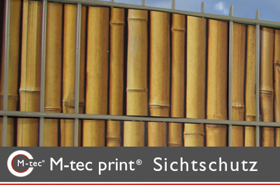 Der Unterschied: Die "M-tec print"® Streifen sind so gefertigt, dass sie, im Zaun eingeflochten, ein komplettes zusammenhängendes Bild ergeben. Gefertigt auf der bewährten "M-tec profi line"® Qualität.